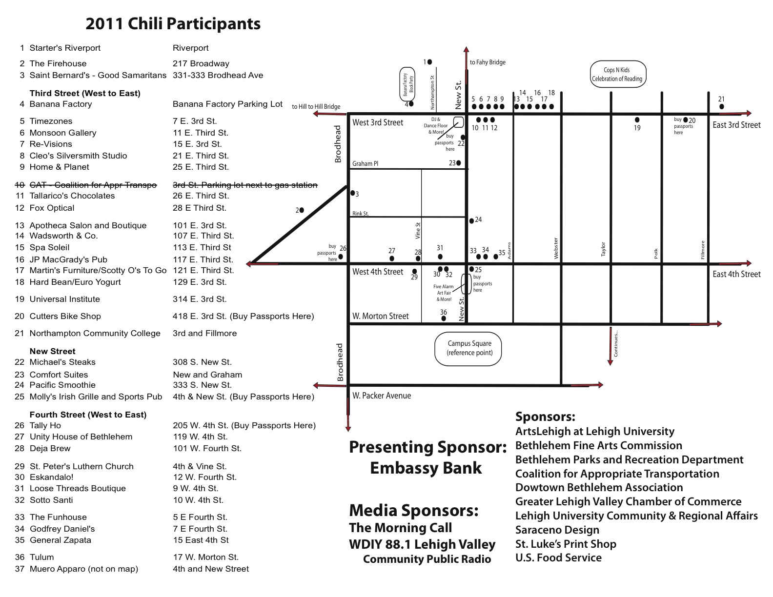 This event is of significance for many reasons. 1. It’s the first festival of Bethlehem’s festival season. 2. It’s a true grass-roots event, planned by and populated by many organizations. 3. There is chili~ and a lot of it! Even vegetarian chili! So stop by and make sure you’re hungry. There’s over 35 restaurants/organizations participating and all the proceeds will benefit the Southside merchants and our whole Lehigh Valley. Oh, and chili’s apparently really good for you, so there’s no guilt involved either.